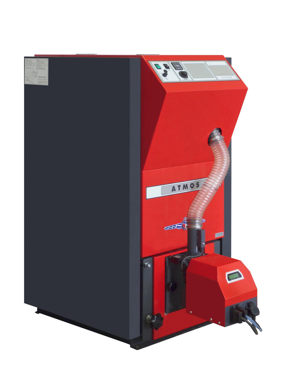 ATMOS – це чеський автоматичний котел на пелетах, розроблений для економного та екологічного опалення приватних будинків, комерційних та промислових приміщень. Котел постачається комплектною системою, що включає пальник ATMOS A25, транспортер і бункер для пелет (215 л), що забезпечує повністю автономну роботу.